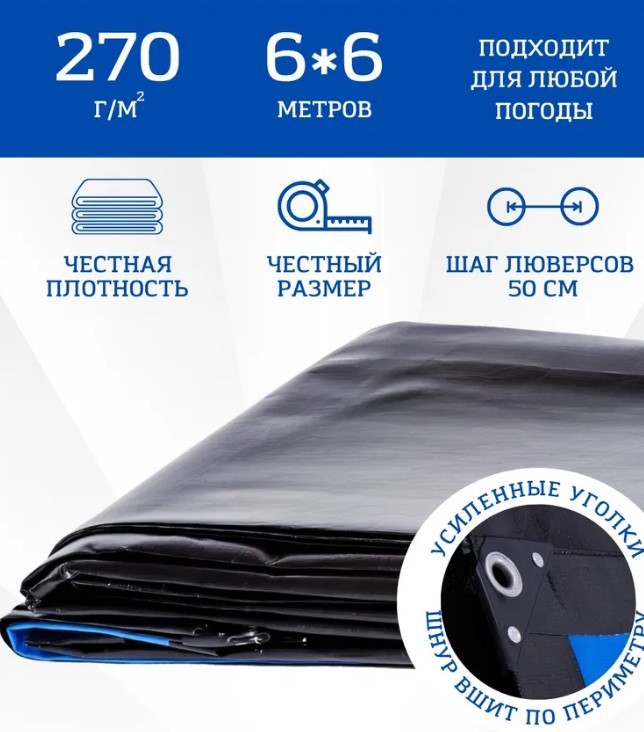 Тент 6х6 м, 270 г/м укрывной усиленный с люверсами Тарпикс
