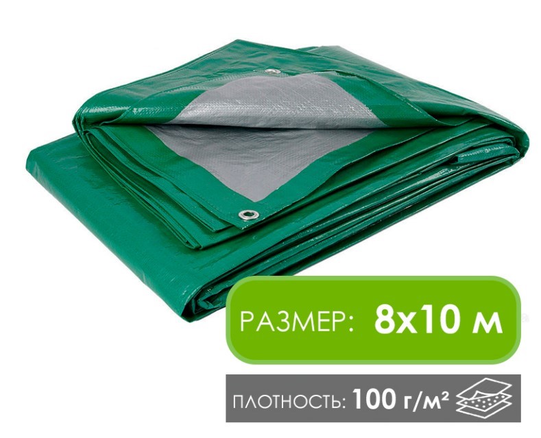 Тент 8х10 м, 100 г/м2 укрывной защитный с люверсами