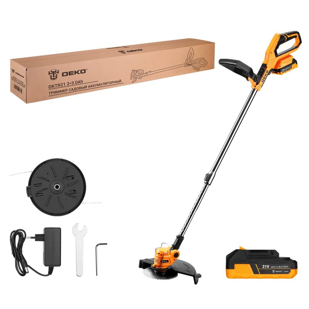 - Триммер садовый аккумуляторный DEKO DKTR21 предназначен для скашивания травы в труднодоступных местах, вдоль заборов, клумб, подравнивания газонов, краев садовых дорожек.